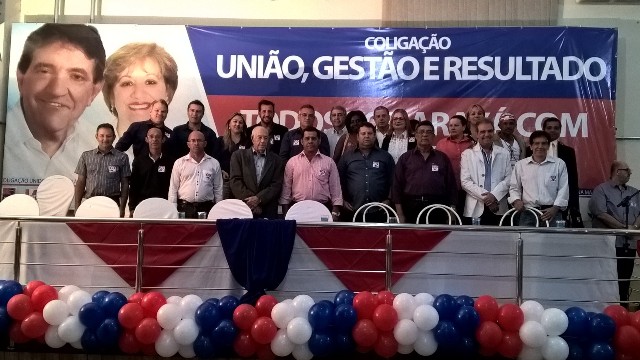 Ao todo, a Coligação União, Gestão e Resultados tem 17 partidos coligados: PR, PP, PRB, PSD, PDT, PPS, PTB, PMDB, PT do B, PRTB, PRP, PROS, PSL, PTN, PC do B, PPS e PEN.