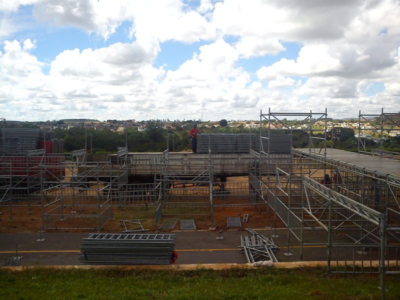Faltando pouco menos de um mês para iniciar a 40ª Exposição Agropecuária de Araxá (ExpoAraxá), a estrutura dos camarotes e arquibancadas começam a tomar forma e ocupar o espaço na arena do Parque de Exposições Agenor Lemos. Algumas carretas com as ferragens estão no local há algumas semanas e agora os trabalhadores começam a montar as áreas.
