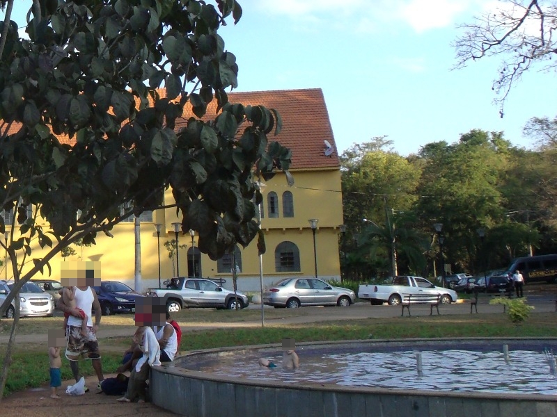 Existem no meio da fonte, algumas estruturas metálicas que esguicham água quando o sistema está funcionando. Esse material metálico pode ferir alguma criança descuidada, causando danos graves. Além do mais, a água não é trocada com freqüência e constantemente, é usada por cães para matarem a sede e o calor.