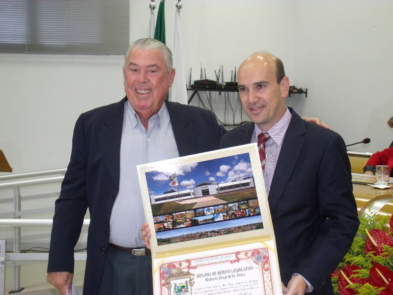 Antigos parlamentares foram homenageados pela Câmara Municipal na noite de ontem (20), no Plenário Guilherme Gotelip Neto, em Araxá, Alto Paranaíba, através da outorga do Mérito Legislativo Mariano Joaquim de Ávila. A honraria será concedida anualmente àqueles que exerceram seus mandados com vocação e exercício da cidadania.