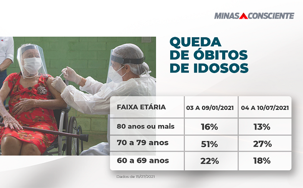 A mortalidade por faixa etária também apresentou uma queda expressiva na população com mais de 60 anos, grupo mais vulnerável à doença. “Nas primeiras semanas de 2021 tínhamos um acúmulo de óbitos na faixa etária 60+ de quase 90%. Agora, chegamos a 60%. Ainda é o grupo que mais concentra óbitos, mas com uma proporção muito inferior a que tínhamos antes do início da imunização”, explicou Baccheretti.
