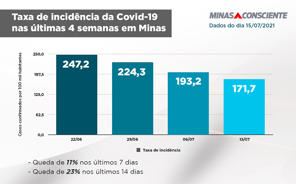 Incidência da Covid-19 cai 23% em Minas Gerais