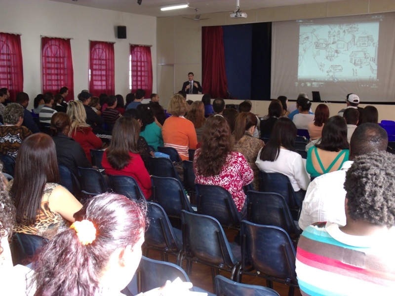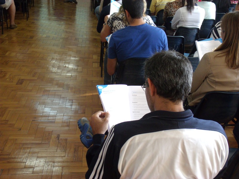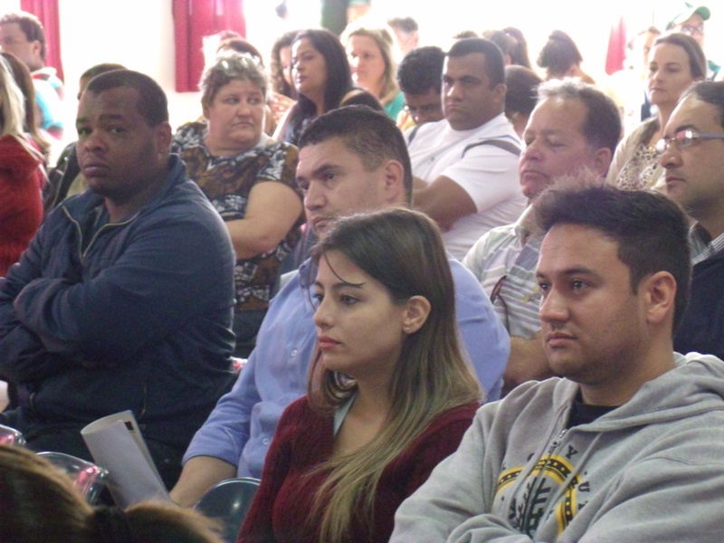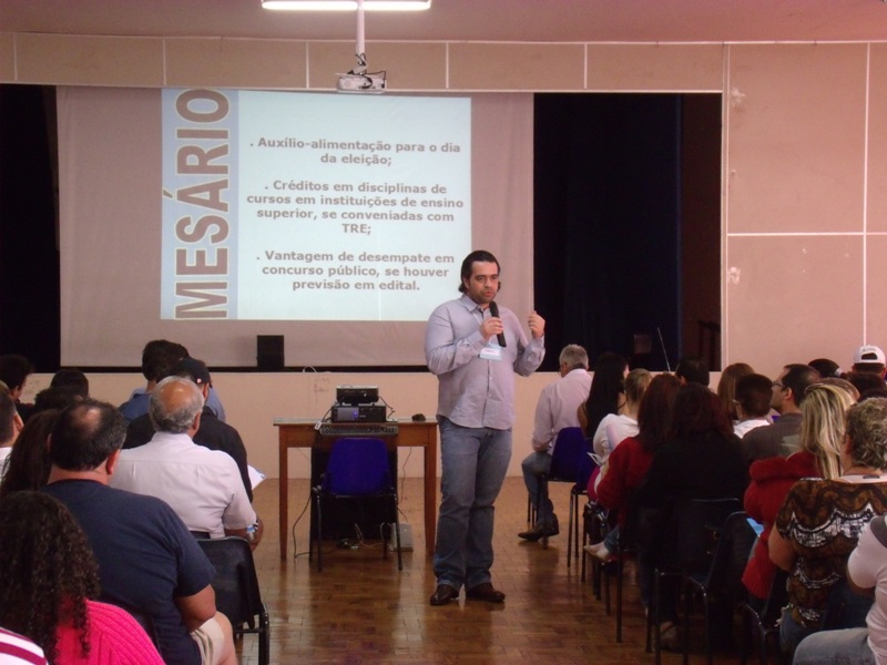 No auditório do colégio eles acompanharam as palestras. Na conferência, uma equipe da Justiça Eleitoral falou sobre as atribuições dos mesários e a responsabilidade de cada voluntário. Os treinamentos duraram duas horas e foram divididos em duas turmas, na parte da manhã e outra à tarde.