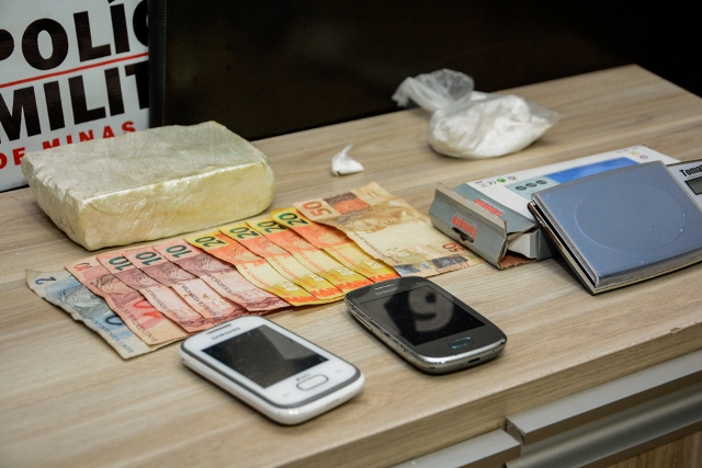 Com ela foi apreendido um saquinho com 100 gramas de cocaína, uma barra pesando aproximadamente 790 gramas da droga e uma balança digital.