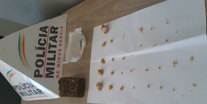 No Padre Alaor a Polícia Militar visualizou um indivíduo em atitude suspeita, que tentou correr para dentro de sua residência. De imediato, o jovem de 24 anos foi abordado. Ele tinha em seu quarto um tablete grande de maconha pesando aproximadamente 70 gramas e várias pedras de crack de vários tamanhos, totalizando cerca de 10 gramas, que renderiam aproximadamente 30 pedras das usualmente comercializadas. Ele foi preso.